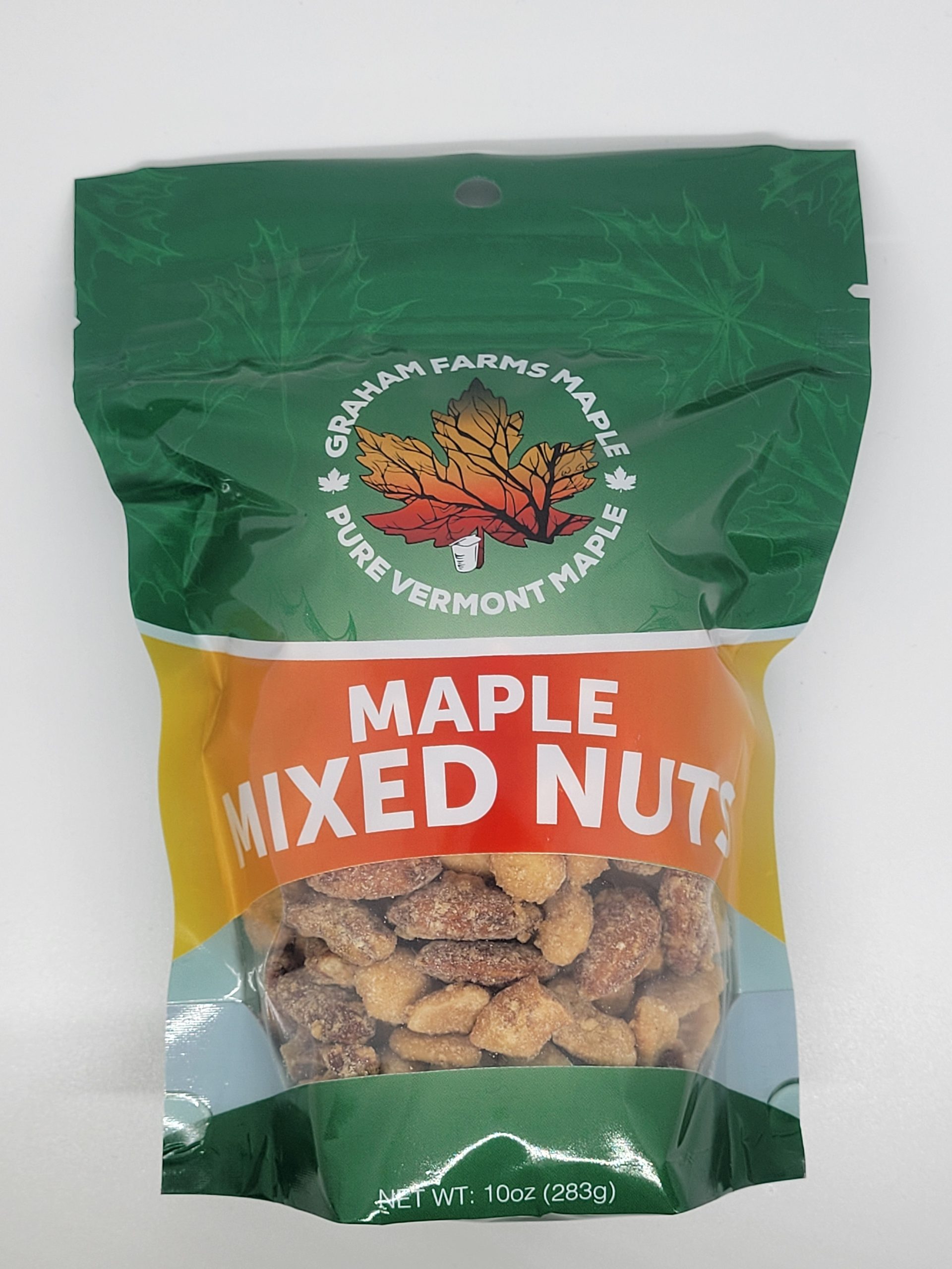 2 bags of your choice of maple nuts. Please note which two of the following kinds of nuts you would like in the note section when you submit your order.